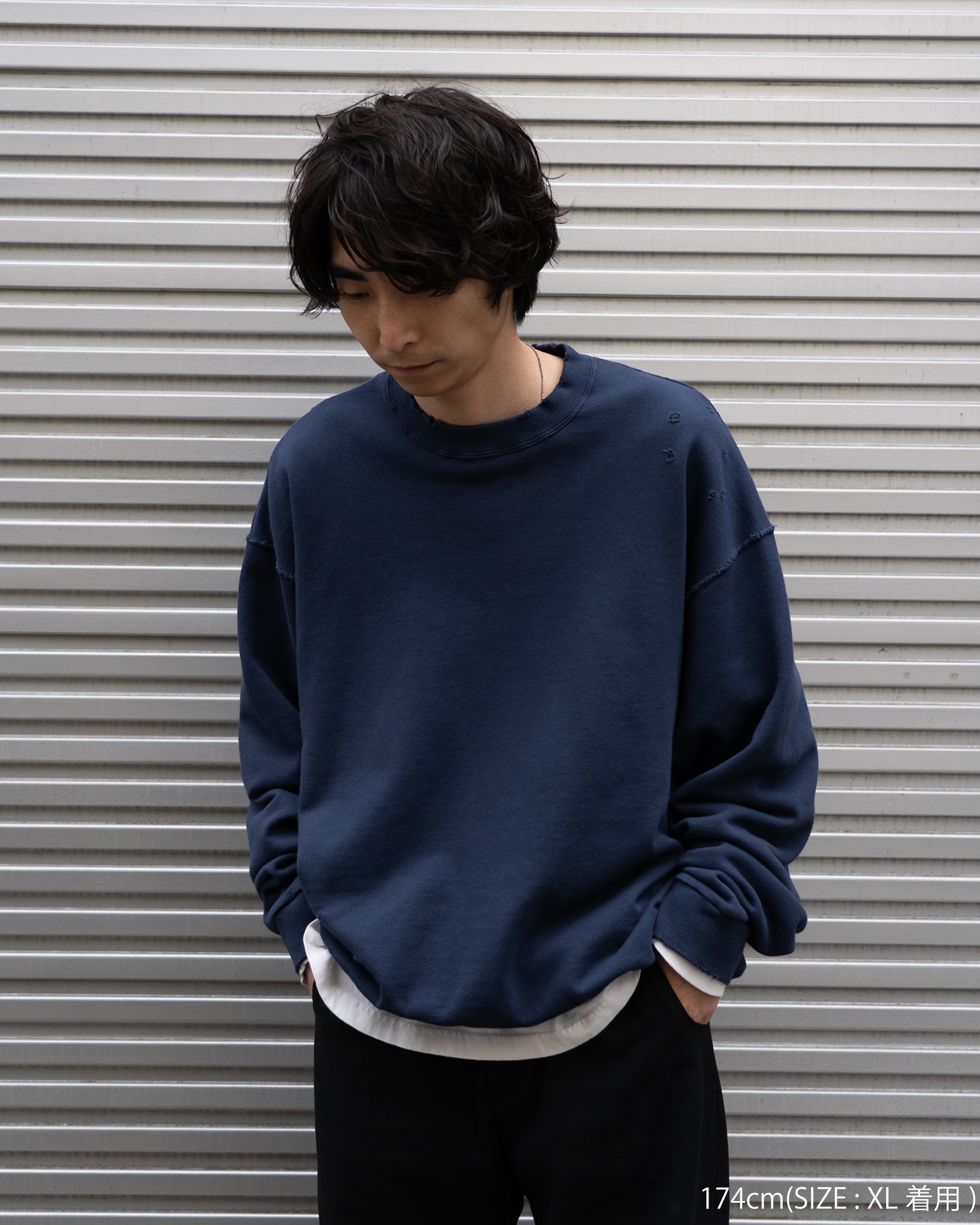 第一弾のクルーネックスウェットは「実家に帰った際に着る服が無くて、自分の部屋だったクローゼットを開けたら入っていたスウェット」がコンセプトです。